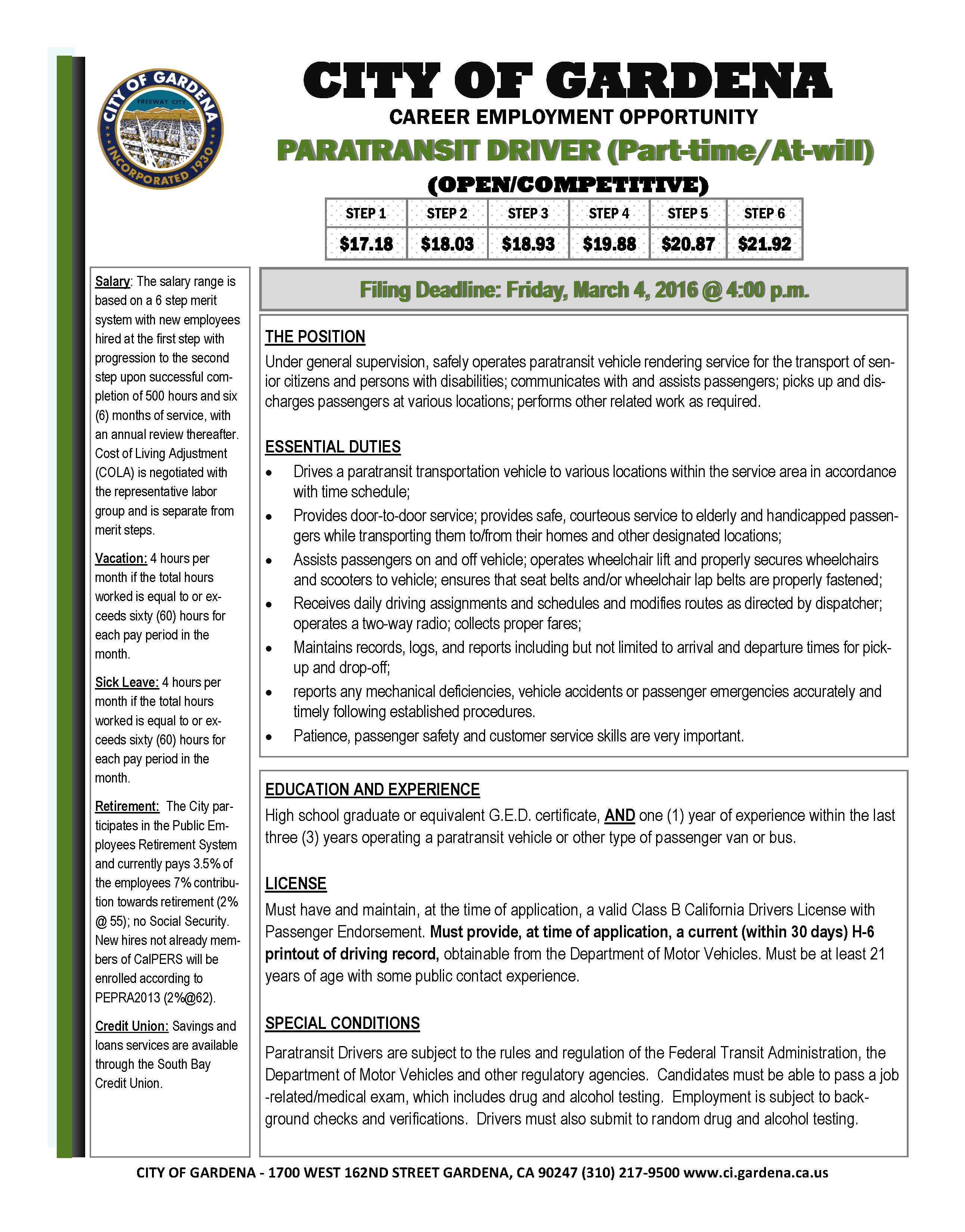 City Of Gardena On Twitter We Are Now Accepting Applications For Bus Operator Pt Paratransit Driver More Info Visit Https T Co 3pkbxsrznd Https T Co Sbxtidyt83 Twitter